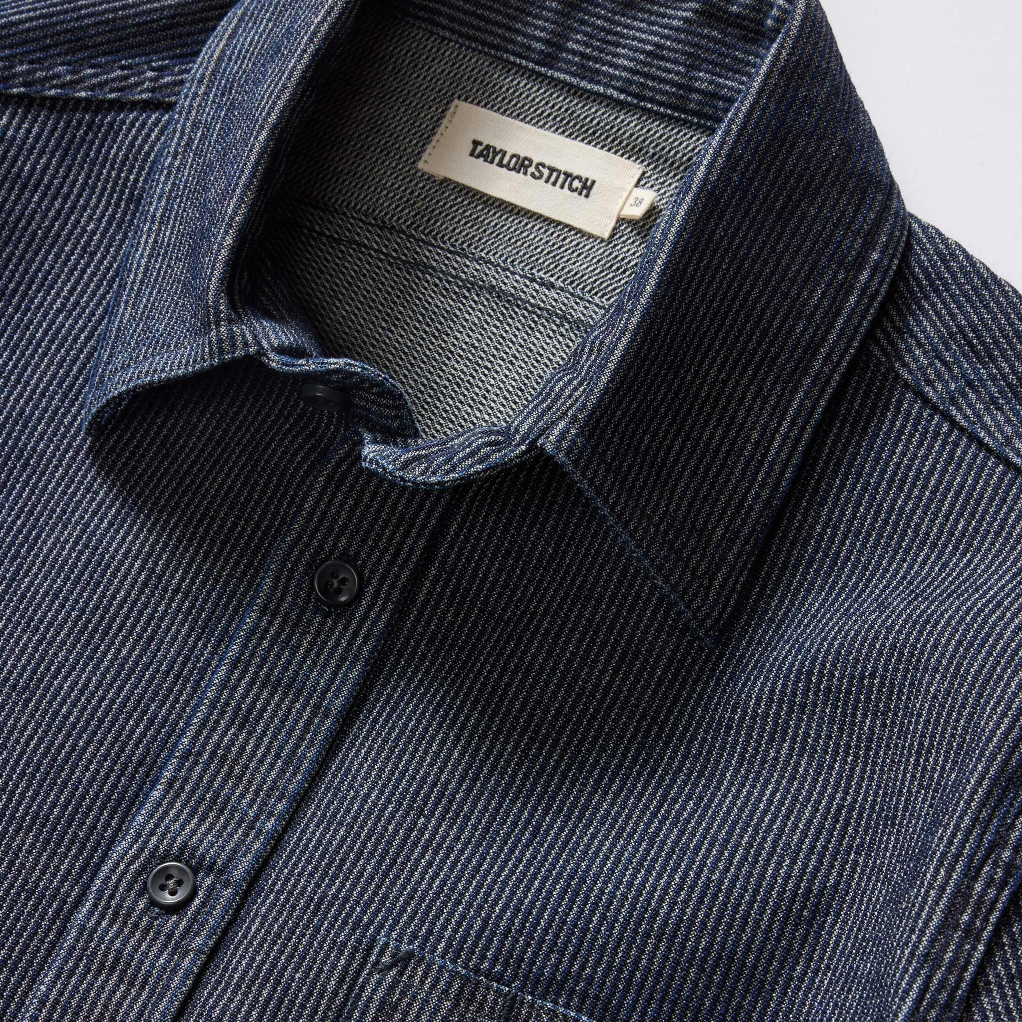 The Utility Shirt in Rinsed Indigo Stripe from Vwsao